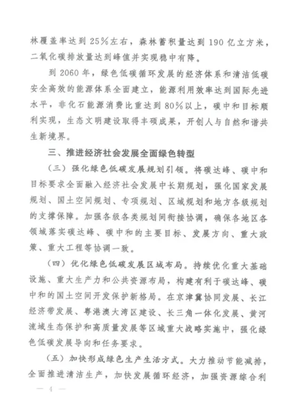 (十七)推進(jìn)城鄉(xiāng)建設(shè)和管理模式低碳轉(zhuǎn)型。在城鄉(xiāng)規(guī)劃建設(shè)管理各環(huán)節(jié)全面落實(shí)綠色低碳要求。推動(dòng)城市組團(tuán)式發(fā)展,建設(shè)城市生態(tài)和通風(fēng)廊道,提升城市綠化水平。合理規(guī)劃城鎮(zhèn)建筑面積發(fā)展目標(biāo),嚴(yán)格管控高能耗公共建筑建設(shè)。實(shí)施工程建設(shè)全過(guò)程綠色建造,健全建筑拆除管理制度,杜絕大拆大建。加快推進(jìn)綠色社區(qū)建設(shè)。結(jié)合實(shí)施鄉(xiāng)村建設(shè)行動(dòng),推進(jìn)縣城和農(nóng)村綠色低碳發(fā)展。
