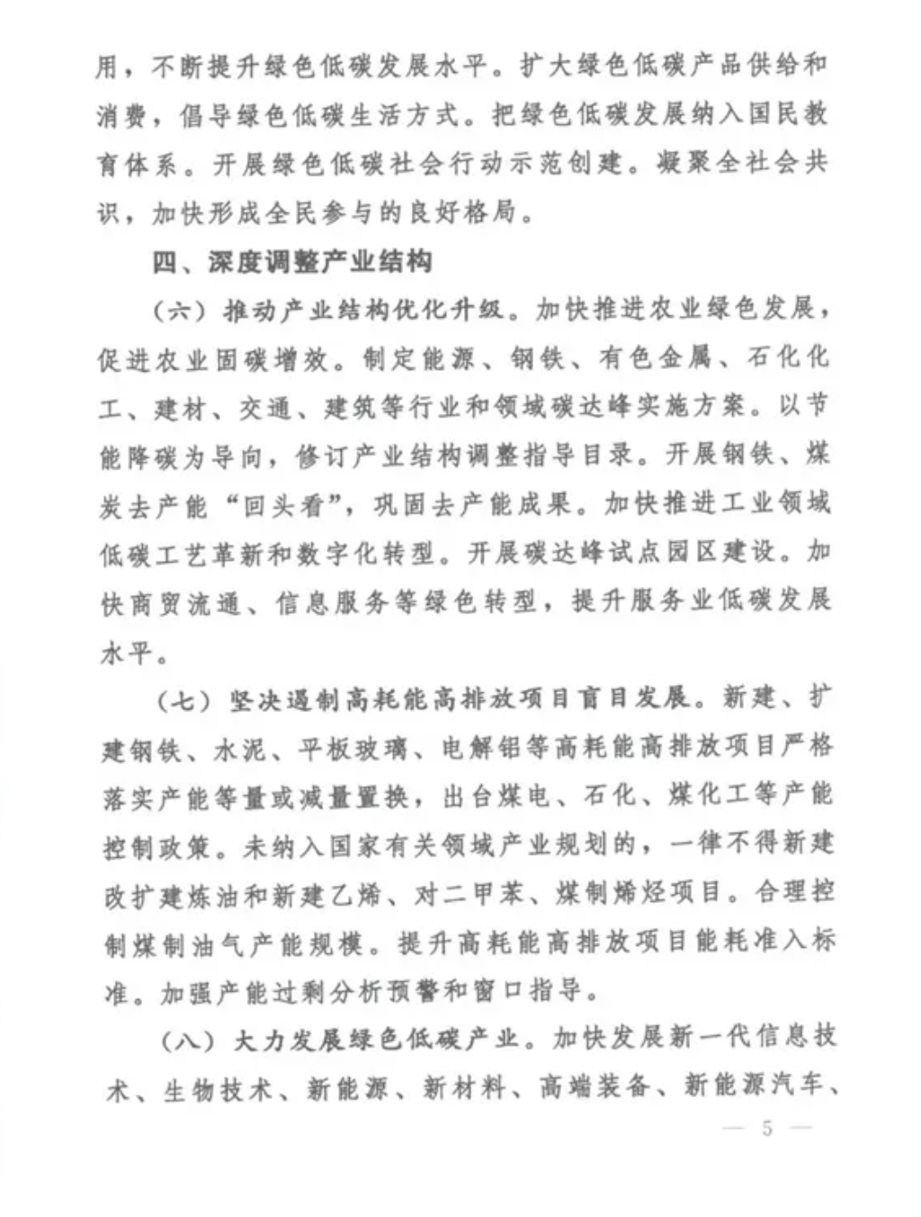 (六)推動(dòng)產(chǎn)業(yè)結(jié)構(gòu)優(yōu)化升級(jí),制定能源、鋼鐵、有色金屬、石化化工、建材、交通、建筑等行業(yè)和領(lǐng)域碳達(dá)峰實(shí)施方案。加快推進(jìn)工業(yè)領(lǐng)域低碳工業(yè)革新和數(shù)字化轉(zhuǎn)型。開(kāi)展碳達(dá)峰試點(diǎn)園區(qū)建設(shè)。