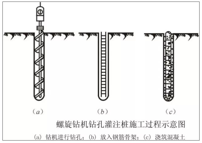 1、干作業(yè)成孔一般采用螺旋鉆機(jī)鉆孔。螺旋鉆頭外徑分別為Φ400mm、Φ500mm、Φ600mm,鉆孔深度相應(yīng)為12m、10m、8m。適用于成孔深度內(nèi)沒(méi)有地下水的一般粘土層、砂土及人工填土地基,不適于有地下水的土層和淤泥質(zhì)土。