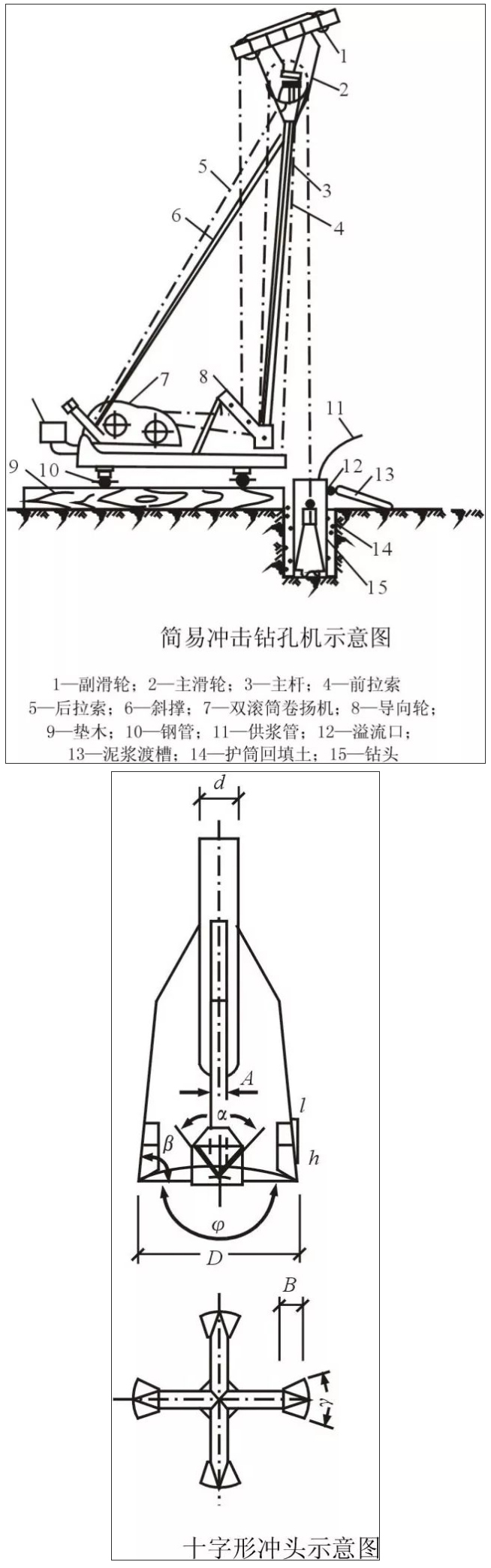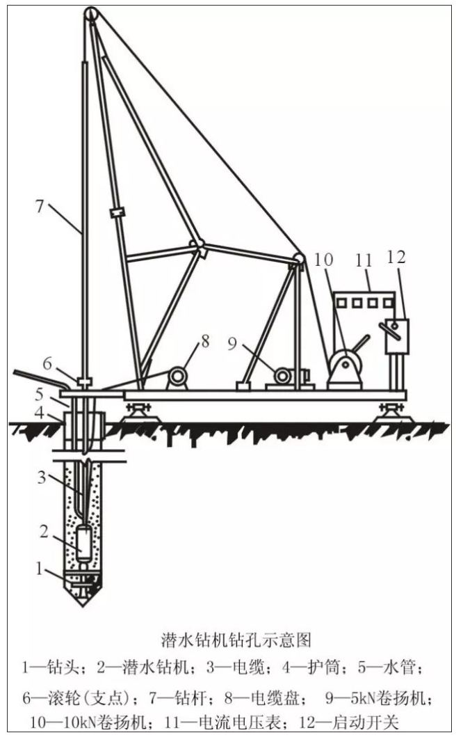 2、成孔機(jī)械有潛水鉆機(jī)、沖擊鉆機(jī)、沖抓錐等。